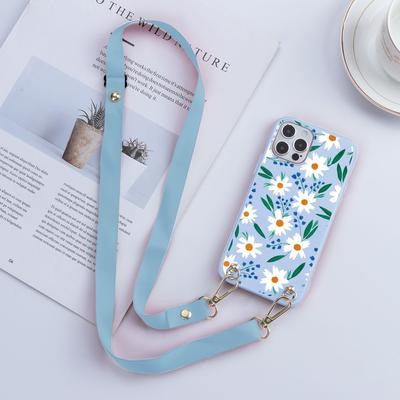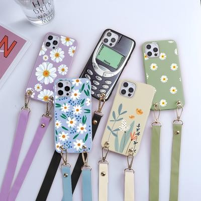 Цветочная пара Crossbody Ремешок Шнур Цепочка Ремешок Ремешок Чехол для телефона для iPhone 11 12 13