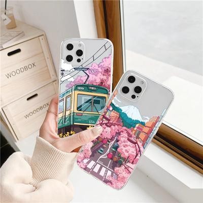 титульная страница > Электронная продукция > Японский эстетический прозрачный чехол Traint Moun Fuji для iPhone 14 13 12 11 Pro Max 8 7 Redmi 12C