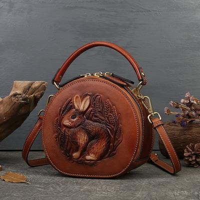 Кролик Тисненая сумочка Подлинная кожа Ретро Женская сумка Универсальная Настоящая Коровья кожа Сумк