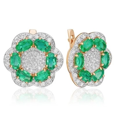 титульная страница > Ювелирные изделия > PLATINA Серьги с английским замком из красного золота 585 пробы c изумрудами и бриллиантами