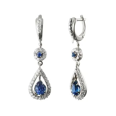 G.st. ЮВЕЛИРНЫЙ ЗАВОД ЗОЛОТОЙ СТАНДАРТ Серьги из белого золота с натуральными сапфирами и бриллианта