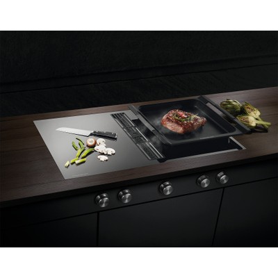 Индукционная варочная панель с вытяжкой Kuppersbusch KMI 9850.0 SRВарочная панель:-13-ступенчатая регулировка мощности «knobControl» cо стальными поворотными переключателями (в комплекте)-Цифровой дисплей для управления вытяжкой-3 специальные ступени: ступень плавления: ? 42 °С, ступень поддержания тепла: ? 70 °С, ступень для приготовления пасты: ? 94 °С-Распознавание наличия и размера посуды-Автоматика закипания-Индикация остаточного тепла-Память при отключении-Принудительное отключение (ограничение продолжительности работы)-Функция объединения ближней и дальней варочных зон в одну-Подключение к вытяжке с правой стороны-Класс энергоэффективности вытяжки: A-Размер рабочих зон: 210x190 ммВытяжка:-4-ступенчатая регулировка мощности вытяжки-Цифровой дисплей для управления вытяжкой-Производительность вытяжки: в стандартных режимах не более 530, в интенсивном режиме – 620 м3/чМощность:-Дальняя левая и ближняя правая: 2,1 / 3,0* кВт-Ближняя левая и дальняя правая: 1,6 / 1,85* кВтПотребляемая мощность:-Панель: 7,4 кВт-Вытяжка: 0,115 кВтУровень шума вытяжки:-Минимальный: 45 дБ-Максимальный: 55 дБ-Интенсивный режим: 68 дБ-Глубина столешницы: 55 ммПреимущества индукционной варочной панели:-Энергоэффективный способ приготовления пищи за счет прямой передачи энергии посуде (требуется соответствующая посуда, изготовленная из магнитных материалов)-Повышенная безопасность, так как передача энергии происходит только при нахождении посуды на варочной панели-Высокая эффективность теплопередачи между индукционной варочной зоной и дном посуды-Высокая скорость нагрева-Низкая опасность ожогов, так как варочная зона нагревается только от контакта с дном посуды; выкипевшая жидкость не прилипает к поверхности-Быстрое и точное регулирование мощностиИндукцияМногие профессиональные повара являются убежденными сторонниками этой энергии. Индукцию можно применять так, как никакой другой вид энергии - быстро, экономно и безопасно. Секрет индукции: энергия подается туда, где стоит посуда с электромагнитным дном. Тепло вырабатывается непосредственно внутри дна самой посуды, что способствует максимально быстрому нагреву при минимальном расходе электроэнергии. Кроме того, сама варочная панель не нагревается, а значит, к ней ничего не пригоритРаспознавание и наличие посудыВнутри всех индукционных варочных зон в дополнение к системе распознавания посуды находится датчик распознавания размера посуды. Он определяет диаметр посуды и, при необходимости, включает дополнительный нагревательный элементСплошная индукционная поверхностьСплошная индукционная поверхность позволяет адаптировать размер варочной зоны для индивидуальных потребностей. Варочные зоны обычного размера используются для небольшой посуды. Для посуды большего размера и утятниц каждая ближняя варочная зона может быть объединена с дальней, а также все 4 варочные зоны могут быть объединены в единое пространствоУсиленный нагревИндукционные варочные панели Kuppersbusch способны увеличивать мощность отдельных варочных зон при помощи подключения режима Power. Это позволяет при необходимости значительно ускорить процесс нагреванияХарактеристики:-Потребляемая мощность: варочная панель - 7,4 кВт / вытяжка - 0,115 кВт-Размеры прибора (Ш х Г): 898 х 518 мм -Размеры ниши (Ш х Г): 860 х 500 мм