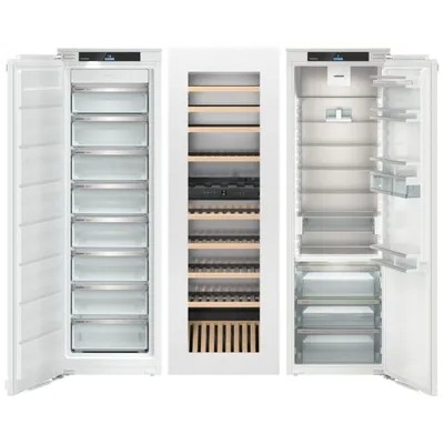 Комбинация Side-by-Side (SIFNe 5178 + EWTgb 3583 + IRBd 5150)Особенности:NoFrostФункция защиты от детейСветодиодное освещение морозильного отделенияСветодиодное освещение зоны свежести BioFreshВинные шкафы серии VinidorФильтр из активированного угляCleaningModeEnergySaverХранение в условиях минимальной вибрацииSuperFrostПревосходная влажностьБлокировка экранаИзолирующая дверь со стеклопакетомPartyModeнормальный режим.Сигнал об отключении питанияHolidayModeBottleTimerАварийный сигнал открытой двериСигнал при повышении температурыМаслёнкаФильтр FreshAir с активированным углём.Поднос для замораживанияАккумуляторы холодаVarioSpaceКонцепция Side-by-SideОбщие данные:Размеры:высота: 181,6 смширина: 171,3 см (55,9 + 59,5 + 55,9)глубина: 57,2 смОбщий объем/ Полезный объем:Холодильника (л): 877/771Холодильной камеры (вкл. зону свежести) (л): 321/291Морозильной камеры (л): 249/209Винной камеры (л): 307/271Тип управления: электронныйКласс энергопотребления: A++/A/A++Климатический класс: SN-T (от +10°С до +43°С) / SN (от +10°С до +32°С) / SN-T (от +10°С до +43°С)Годовое потребление энергии: 553 (271+162+120) кВтч/годЦвет: белыйХолодильное отделение:8 полок из закаленного стекла (из них 7 регулируемых по высоте и 1 разделяемая)VarioSafeКоличество полок на двери для хранения бутылок: 2Количество полок на двери для хранения консервов: 2Контейнеры VarioBox: 2, выдвижныеОтделения в двери: Полка для бутылок и консервовРегулируемые по высоте полки на внутренней стороне двери: Ступенчатая регулировкаМатериал полок на двери: Стекло с планкой из нержавеющей сталиЗона свежести BioFresh с 3 контейнерами на телескопических направляющих с системой SoftTelescopicСветодиодное освещение зоны свежестиГибкое применение в качестве Fruit-&Vegetable-Safe или Meat-&Diary-Safe: 2Автоматическое размораживаниеДвухсторонняя световая панельРегулируемый диапазон температур: от +3 °C до +9 °CКлиматические зоны: DrySafe / Fruit & Vegetable-SafeЦиркуляционное охлаждениеФильтр FreshAir: В клапанеМеханизмы выдвижения ящиков: Полностью выдвигаемые телескопические направляющие с доводчиком и системой амортизации закрытияЛоток для яиц: ВариабельныйМасленкаСухая задняя панельМатериал сухой задней стены: Легированная сталь с SmartSteelВинное отделение:Максимальное количество бутылок Бордо 0,75 л: 83Количество полок: 10, из них 8 выдвигающийся на телескопических шинах и 1 демонстрационнаяМатериал полок для хранения вина: деревоСветодиодное освещение с плавной регулировкой яркости, продолжительно включаемоеЦиркуляционное охлаждениеФильтр из активированного угляМорозильное отделение:Система No Frost (Frost Free, Ноу Фрост)Время хранения при отключении питания: 14 чМощность замораживания в сутки: 18 кгДиапазон температур: от -15 °C до -28 °CСветодиодное освещениеКоличество контейнеров: 8FrostSafe: Полностью закрытые выдвижные ящики с прозрачной передней стенкойМеханизмы выдвижения выдвижных ящиков: Частично выдвигаемые телескопические направляющиеСистема VarioSpaceЛоток для льда с крышкойЧисло аккумуляторов холода: 2Поднос для замораживанияМатериал регулируемых полок: стеклоДополнительная информация:2,4“ TFT-дисплей цветной, сенсорный и свайповый экранЖК-дисплей с цифровой индикацией температуры (винный шкаф)Индикаторы температурыSuperFrost: Настраивается на устройствеСигнал открытой двери морозильного отделения: Настраивается на устройствеBottleTimer: Настраивается через приложениеБлокировка экрана: Настраивается на устройствеSuperCool: Настраивается на устройс
